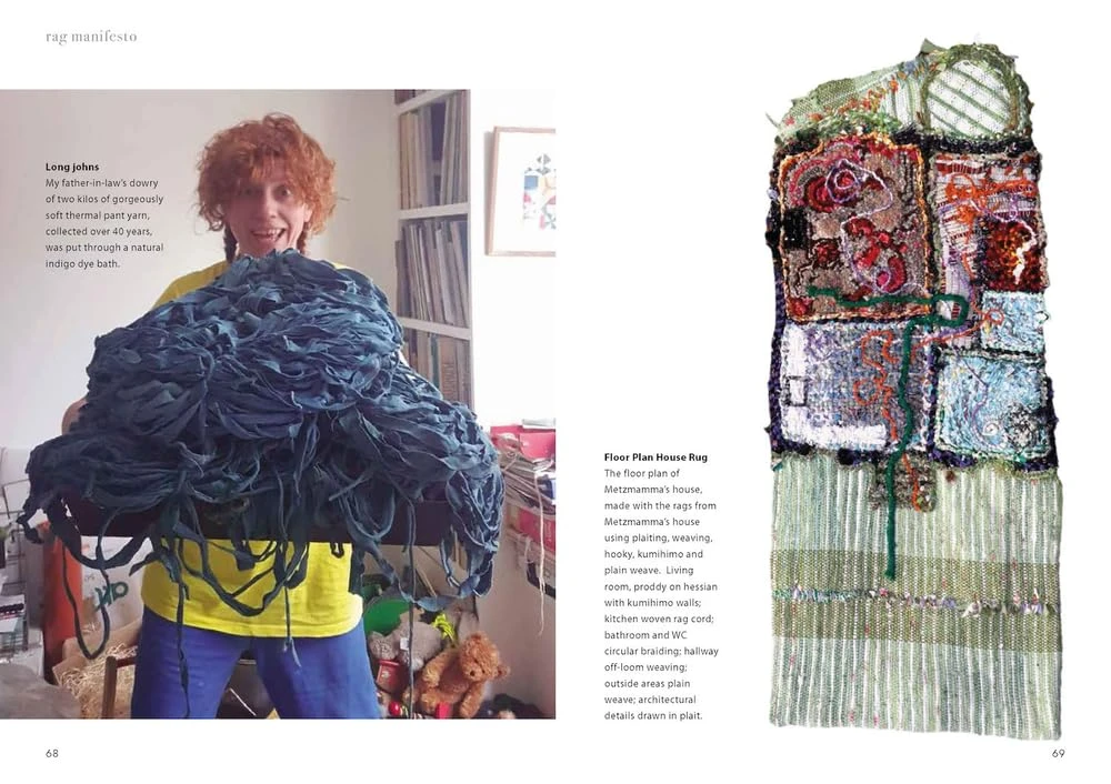 Rag Manifesto is a vibrant, tactile treatise on the art of rag-rug making, reframing humble scraps as vibrant umbrellas of creative possibility in the Anthropocene. Matthews blends studio experimentation and community workshops to cultivate reverence for discarded cloth, challenging the fast-fashion mindset with hands-on practice and ritual. The projects—ranging from solo interventions to collective installations—come with decision-making frameworks and a “destroy-versus-destroy” taxonomy that endow each cut: ‘Worn-Out Emotional’ or ‘Brand-New Guilty,’ with a story and a purpose.