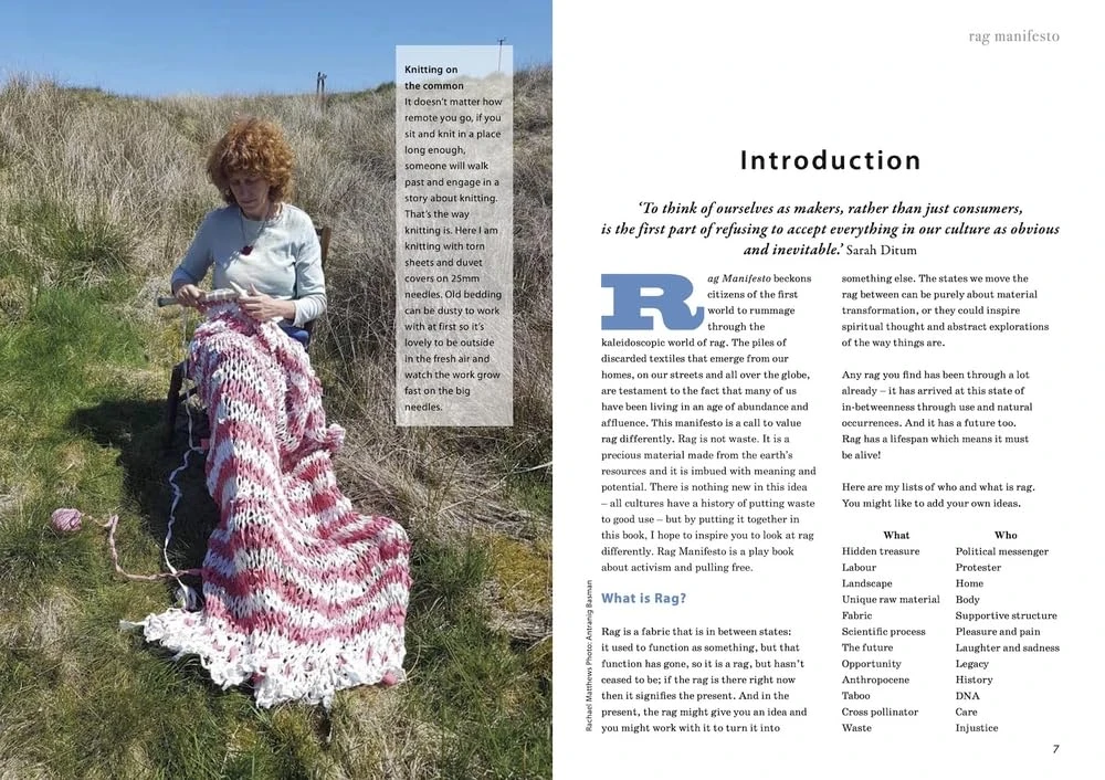 Rachael Matthews is a textile artist, designer, and lecturer at Central Saint Martins and the V&A. A founder of Prick Your Finger yarn studio and a pioneer of community-led craft initiatives, her practice centres on mindful making and textile activism. In Rag Manifesto, she expands her voice as both educator and artist, offering not only technique but also a lyrical vision for how craft can mend our relationships with things—and each other.