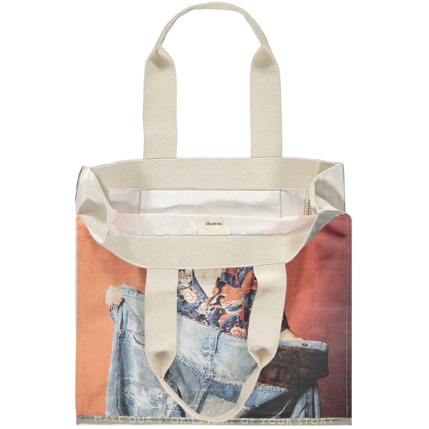 100% cotton tote bag with issue 81 Japan Blue cover image. Same digital print on both front and back of bag (no print on gussets). Handles natural nivad tape. Mobile gusset pocket, 15cm height hanging pocket and taka stitch key loop. Bag measurements: 44 h x 44 l x 12 w (cm). Handle measurements 60 l x 5 w (cm).