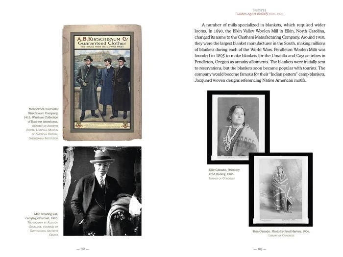 The narrative pivots elegantly between macro-histories and personal vignettes: sheep herds driven across the frontier, workers in woollen mills, and the consumer’s relationship with the material—from home knitwear to warm blankets. With more than a hundred photographs, this is a book that honours wool not just as cloth, but as living, breathing intersection of craftsmanship, innovation, and identity.